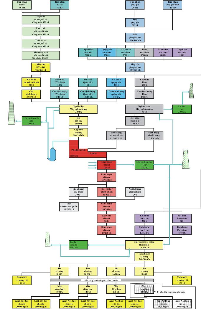 Sơ đồ công nghệ nhà máy xi măng Long Thành