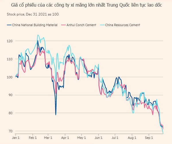 Cổ phiếu của các nhà sản xuất xi măng lớn của Trung Quốc theo đó bị ảnh hưởng nghiêm trọng. Xi măng Conch An Huy và Xi măng Tài nguyên Trung Quốc, hai trong số những Công ty lớn nhất của đất nước, từng chứng kiến cổ phiếu niêm yết trên sàn Hồng Kông giảm lần thứ 3 từ đầu năm đến nay.